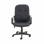| Professional-looking fabric executive chair with a swivel base and fixed arms |