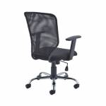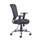 This First Task Chair features a mesh back and fabric seat. It is supplied with height adjustable arms and a chrome base. The lock-tilt mechanism allows you to easily adjust the seating position to what suits you. Recommended usage time: 8 hours. Max weight tolerance: 18 stone. Seat dimensions: W500 x D480mm. Back dimensions: W480 x H570mm. Seat height: 435 - 530mm. Arm height: 630 - 720mm.