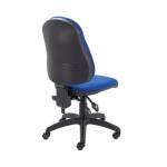 This Operator Chair has a high back for improved comfort and posture for up to 8 hours at your desk. The back height and angle is adjustable and can be either fixed or free floating. The seat height is also adjustable from 460mm to 590mm. The padded seat and back are upholstered in Blue fabric and the chair comes on a black plastic 5 castor base (an optional chrome base is available separately).