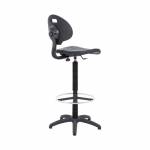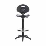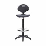 This Jemini draughtsman chair features a durable, ergonomically shaped seat that wipes clean with ease. Ideal for factory, warehouse, laboratory or workshop use, the chair is made from polyurethane material that is both tough and soft, for comfort that can withstand the rigours of heavy duty use. The seat features gas height adjustment from 700mm to 810mm, five swivel castors to allow easy movement but we recommend using the glides provided, and a metal ring footrest for additional comfort.
