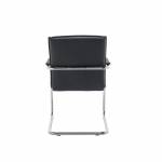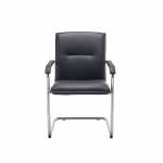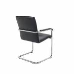 - Featuring a bright chrome cantilever base contrasted with black leather look upholstery, these contemporary leather look visitor's chairs makes a stylish addition to any office. Supplied complete with leather look armpads for comfort.