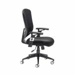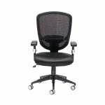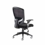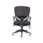 - These chairs fuse the comfort of cushioned pads with the support quality of a mesh back. Each chair has a high back, with adjustable back tilt for flexibility. The arms can be raised or lowered and the chair also features a five wheel base for mobility. This pack contains 1 black chair with a recommended usage time of 8 hours.