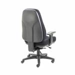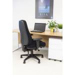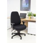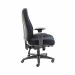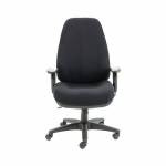 With a supportive high back and extra thick padded seat, the Lucania Task Chair in black is ideal for heavy duty, 24 hour use.Designed for call centres, control rooms and other multi-shift environments, the versatility of the asynchro mechanism, where the height and tilt of both the seat and back are adjustable, means it is easier to find a comfortable seating position. Able to support sitters of up to 24 stone in weight, adjustable arms are included and an optional chrome base can be purchased for that finishing touch.
