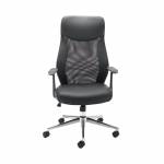 This high back operator chair with a mesh back and adjustable seat height provides an ideal option for all day comfort at your desk. The leather look PU seat is easy to keep clean. The seat is height adjustable and has a lock tilt mechanism with tilt tension control to provide the optimum seating position for the user. The chair has a recommended usage time of 8 hours and a maximum sitter weight of 18 stone. Supplied complete with fixed arms and a chrome base with castors.