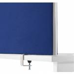 Provide privacy and reduce noise levels between desks with this Jemini Mounted Desk Screen. In a simple blue, the screen is upholstered with Elfin flame retardant fabric with a protective up VA edge trim. This screen measures W1600 x D28 x H400mm and comes with a pair of standard desk clamps.