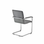 The Arista Stratus Visitor Chair has a chrome cantilever frame with contemporary leather look upholstery and leather look arm pads for comfort. The chair is non-stackable and has a recommended usage time 8 hours.