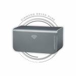 Diamond Dryers are elegant, strong and powerful, unrivalled in the current market. With an anodised finish, this hand dryer offers heightened protection and increased strength against abrasions and corrosion. This unique finish additionally provides an elegant look and texture, rarely seen within washroom environments. Such a tough and hardwearing surface ensures this hand dryer is highly resistant to daily wear and tear and scratches. The compact size of just 272 x 136 x 123mm ensures this hand dryer is the fits all washroom environments. Durable in design with a brushless motor, this hand dryer lasts longer than hand dryers with traditional brushed motors. With air purifying and sterilization mode, the unit features a HEPA filter and UV-C Light and Plasma ion Generator which sterilises the air on standby. Using only 320 watts of energy to power the Diamond Dryer, results in an energy efficient and environmentally friendly hand dryer. Suitable for high traffic areas and intensive use, this low energy, high speed hand dryer requires minimal maintenance. Supplied in black.