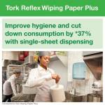 - The 2 ply multipurpose Tork Reflex™ Wiping Paper Plus is ideal for mopping up liquids and hand drying. This paper can be used in the Tork Reflex™ single-sheet centrefeed dispenser, which fits your team’s workflow, cuts down consumption and minimises the risk of cross-contamination.