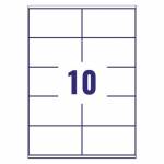 - These Avery weatherproof parcel labels are made from extremely durable polyester, which is oil, dirt and UV resistant, as well as waterproof, tear proof and temperature resistant from -20 to 80 degrees Celsius. For use with laser printers, these labels are ideal for use with a variety of packing materials, including polythene envelopes. Each white label measures 99.1 x 57mm. This pack contains 25 A4 sheets, with 10 labels per sheet (250 labels in total). Redeem an Avery voucher or a shopping voucher worth up to ?15! (averyrewardsclub.co.uk).