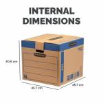 Fellowes Bankers Box SmoothMove Fastfold Removal Box is an environmentally friendly, reusable box made from strong double thickness corrugated board. It features Fastfold automatic assembly for your convenience. Each box has a secure locking lid and reinforced hand holes for easy storage, transportation and to protect the integrity of the contents. These large boxes come flat packed in a pack of 5.