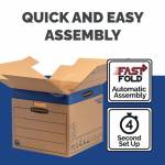 - Fellowes Bankers Box SmoothMove Fastfold Removal Box is an environmentally friendly, reusable box made from strong double thickness corrugated board. It features Fastfold automatic assembly for your convenience. Each box has a secure locking lid and reinforced hand holes for easy storage, transportation and to protect the integrity of the contents. These large boxes come flat packed in a pack of 5.