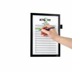 The original fold-back frame. DURAFRAME® NOTE with pen holder is the ideal solution for writing directly on documents and notices. The inserts can be quickly exchanged thanks to the unique magnetic fold-back design.