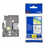 - Supplied on a long 8m roll, this TZe labelling tape from Brother is perfect for identifying and labeling items with your P-Touch label maker, even in extreme environments. This 9mm wide tape is covered with a laminate film to protect the tape from wear and tear in daily use. The tape is also waterproof and exceptionally resistant to changes in temperature, so it'll stay attached in all weathers and conditions. Ideally for industrial environments, it's both chemical and abrasion resistant. Black text on a white background lets you colour code your labels for efficient use.