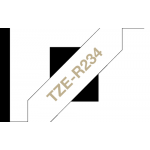 - Work your magic by adding a personalised touch to gifts, cards and crafts with this genuine Brother TZe-R234 gold on white ribbon tape. With the TZe-R234 you can rely on a fast and reliable output, as well as a sharp and professional standard of printing. Compatible with Brother P-touch label printers that show the TZ or TZe logo on the tape cassette cover.