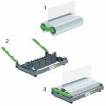 Easy to refill 100 micron cartridge; providing effortless laminating roll replacement and efficiency. |
