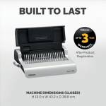 20 sheet punch capacity, 300 sheet binding capacity with a maximum comb size of 38mm |