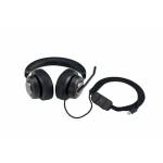 | A long 1.8m (6´) tangle-free nylon braided USB-C cable (with USB-C to USB-A dongle) provides the dependability of a wired connection and the freedom to stand and stretch during extended calls. Easily carry your headset in the flannel travel bag |