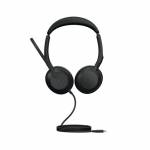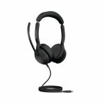 - The Jabra Evolve2 50 USB C UC MS Stereo Headset is ideal for taking professional calls from the spare bedroom; playing motivational playlists before a big pitch; or for listening to meditative sounds when it is time to focus. The Evolve2 50 is specially engineered to go with the flow. Just plug in and it is instantly ready to work, delivering professional sound for calls and music, with powerful ANC, noise-cancelling microphones, and custom 28mm speakers. With revolutionary Jabra Air Comfort technology, for maximum comfort, this professional all-rounder headset is engineered for hybrid working.