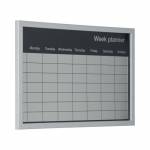 - Bi-Offices Week Planner is a versatile tool that allows you to organise, up to a months work, in a simple, easy and efficient way, or just organise a week, day by day and hour by hour. Use it to create both individual and team schedules in a dynamic and ever changing office environment. Its silver finish magnetic surface is drywipe and guaranteed to last for years of hard work and heavy planning. The frame is in grey lined MDF, allows the product to combine nicely with the space decor.