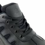 The Tuffking Onyx are versatile safety trainers, this durable black uniform trainer protects from multi-hazard environments. The trainer has a genuine leather upper, padded inner lining with added suede for scuff resistance on the toe and heel. Featuring Stainless steel toe cap and midsole, dual density polyurethane sole that offers anti-static, anti-slip SRC while also protecting against heat up to 130 degrees C. The breathable Cambrelle lining and mesh textile allow for breathability when wearing for long periods. Offering much higher durability than most safety trainers, this is ideal for uniform wear being worn everyday without deteriorating.