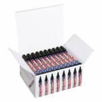 - The edding 360 Drywipe / Whiteboard Markers in black are a versatile piece of stationery, making them ideal for use in schools, offices and at home. Featuring a robust bullet tip, these whiteboard pens create consistent line widths making your writing stand out and easy to read. Made with longevity in mind, these markers boast an impressive cap-off time - up to three full days without drying out. Their high quality ink is not only quick drying but also low odour and is free from butyl acetate, making them an excellent choice for both adults and children. These pens can be replenished using edding's own whiteboard marker refill system, significantly reducing waste and ongoing costs. These versatile drywipe markers write on more than just whiteboards – they also work on glass, metal and other non-porous surfaces. Yet despite their durability on such materials, the ink can still be wiped clean effortlessly. The broader body of these pens makes them user-friendly for all ages, including those developing fine motor skills, ensuring they are comfortable to use even during extended periods of writing or drawing. A handy clip is also included on the pen lid, allowing you to clip these whiteboard markers to notebooks or clothing for easy access. This pack contains 50 edding whiteboard markers, making it the perfect choice for stocking up classroom stationery cupboards or office storerooms.