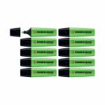 The Stabilo Boss Original is Europe's best selling, most popular highlighter. With its distinctive shape and ultra fluorescent colours, it is a high quality highlighter that writes further, lasts longer and will not dry out. The wedge shape tip can be used to draw broad and fine lines, making it perfect for highlighting, underlining text and even colouring. The Anti Dry Out Technology means the cap can be left off for up to 4 hours and the super bright colours will not fade. This pack contains 10 green highlighters.