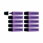 The Stabilo Boss Original is Europe's best selling, most popular highlighter. With its distinctive shape and ultra fluorescent colours, it is a high quality highlighter that writes further, lasts longer and will not dry out. The wedge shape tip can be used to draw broad and fine lines, making it perfect for highlighting, underlining text and even colouring. The Anti Dry Out Technology means the cap can be left off for up to 4 hours and the super bright colours will not fade. This pack contains 10 lavender highlighters.