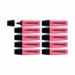 The Stabilo Boss Original is Europe's best selling, most popular highlighter. With its distinctive shape and ultra fluorescent colours, it is a high quality highlighter that writes further, lasts longer and will not dry out. The wedge shape tip can be used to draw broad and fine lines, making it perfect for highlighting, underlining text and even colouring. The Anti Dry Out Technology means the cap can be left off for up to 4 hours and the super bright colours will not fade. This pack contains 10 pink highlighters.