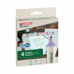 The package contains 4 highlighters in the colours pastel violet, pastel green, pastel rose and pastel blue |