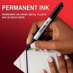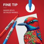- This Sharpie Marker has a fine tip for precise, detailed, permanent writing on a variety of surfaces. The permanent ink is abrasion, UV ray and water-resistant, for long lasting clarity. This pack contains 18 markers in assorted, vivid colours for vibrant impressions across all kinds of art projects at home, school and beyond.