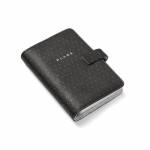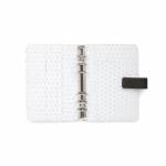 Filofax's Moonlight A5 organiser in black, features gold accents and a patterned interior in white. The faux-leather, textured patterned cover and clean double turned edge construction provides a stylish, chic look. With a 30mm ring capacity, and a closure strap to ensure contents are protected and remain private. Supplied with a transparent flyleaf, Moonlight front sheet, week to view diary, six white dividers, ten sheets of to-do lists, tens sheets of plain notepaper, grey ruler/page marker, top opening envelope and an elastic pen loop.