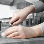 - The affordable choice for low risk environments, this pack of 100 clear powdered disposable vinyl gloves is ideal for a range of uses. Made from PVC vinyl and completely latex-free, these medium-size gloves reduce the risk of an allergic reaction for sensitive users. They provide flexible and comfortable protection for everyday environments, such as; food preparation, cleaning, hairdressing or decorating. These gloves are powdered so they're easier to pull on and also absorb moisture.