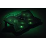 SureFire Bora Gaming Laptop Cooling Pad is suitable for laptops from 12 to 17 inches. The four adjustable green LED illuminated fans achieve a cooling speed of up to 1200RPM. It has two different viewing angles, a non slip base and two hinged stoppers to secure the laptop. There is also an additional USB port. System Requirements: Notebook with USB port or power supply with USB 2.0 and higher (5V/500mA) USB 3.2 Gen 1 or USB 2.0.