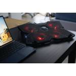 SureFire Bora Gaming Laptop Cooling Pad is suitable for laptops from 12 to 17 inches. The four adjustable Red LED illuminated fans achieve a cooling speed of up to 1200RPM. It has two different viewing angles, a non slip base and two hinged stoppers to secure the laptop. There is also an additional USB port. System Requirements: Notebook with USB port or power supply with USB 2.0 and higher (5V/500mA) USB 3.2 Gen 1 or USB 2.0.
