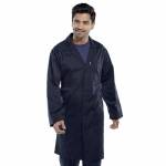 The Beeswift warehouse coat for basic protection of clothing is made from a durable blend of 65% polyester and 35% cotton. Featuring a concealed stud front fastening and rear vents, the coat has a useful breast pocket with pen divide, along with two lower pockets for practical storage or to keep equipment at hand.